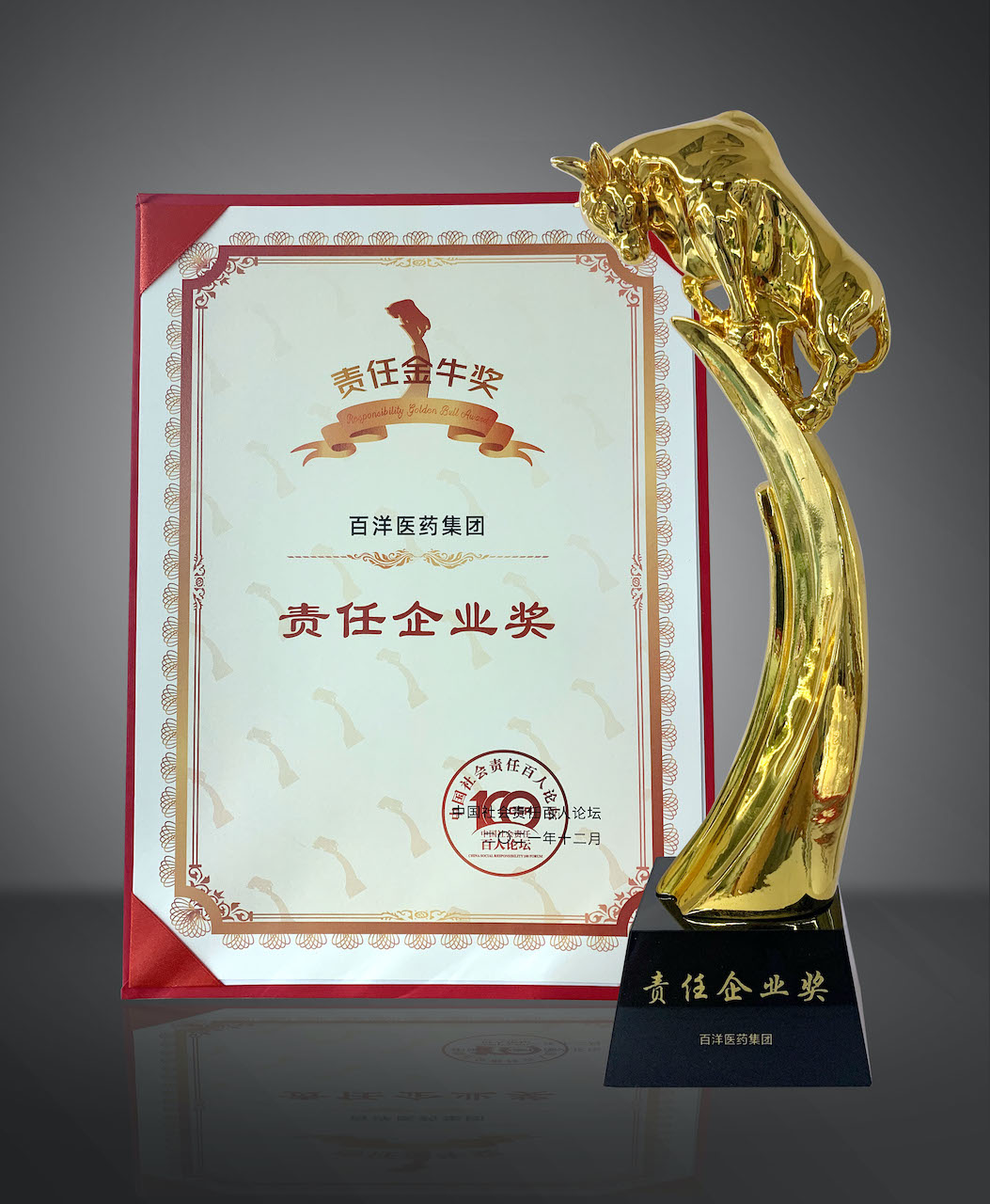2021年百洋醫(yī)藥集團榮獲金牛獎—責(zé)任企業(yè)獎