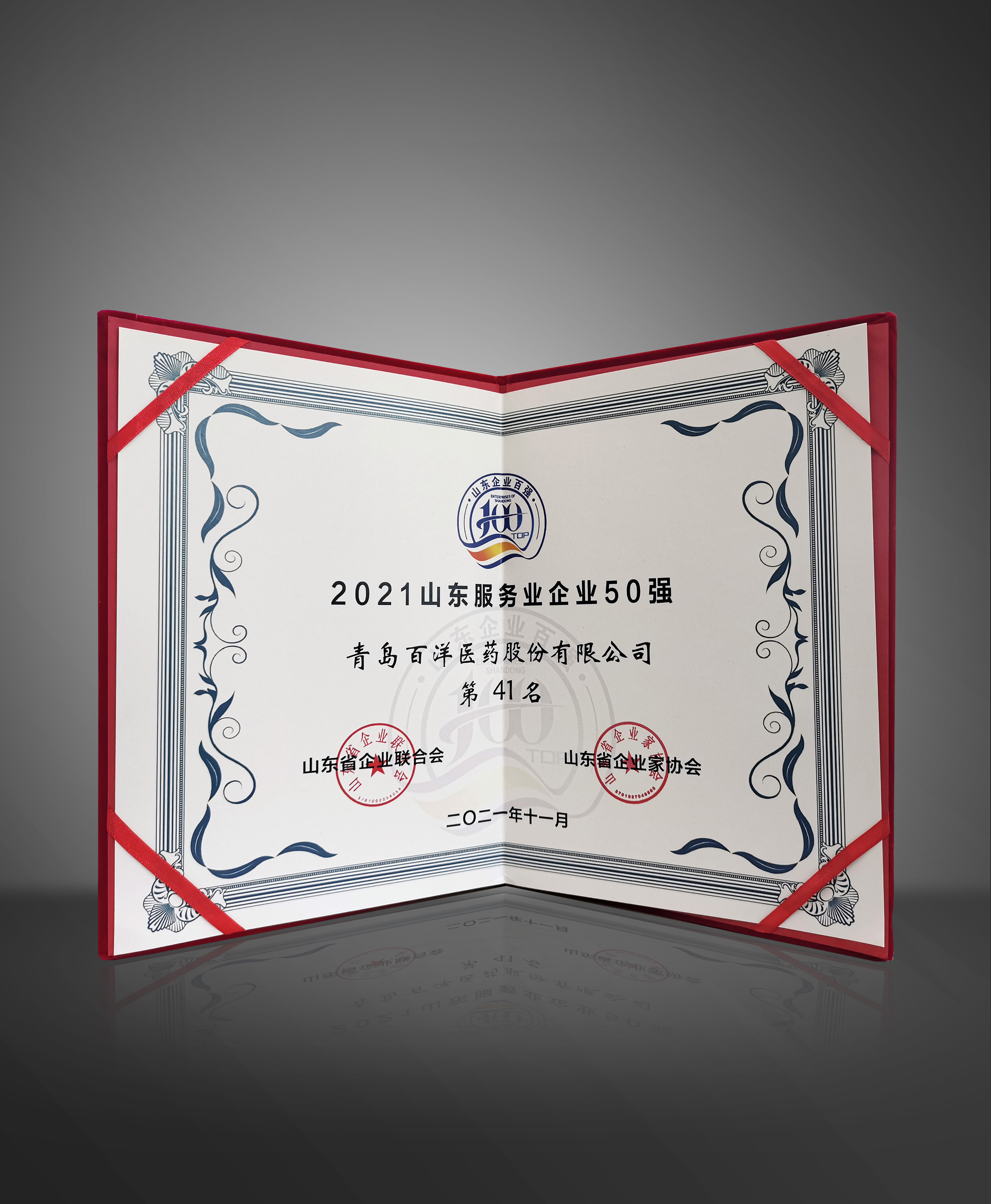 2021年百洋醫(yī)藥入選山東服務(wù)業(yè)企業(yè)50強名單